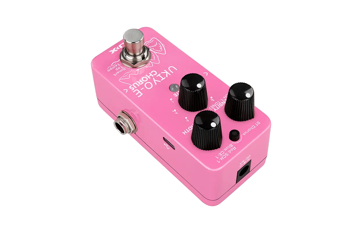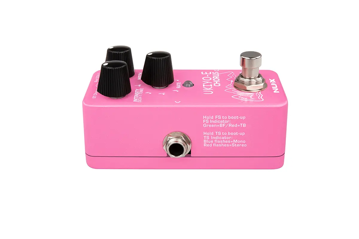 UKIYO-E CHORUS (NCH-4) is a mini chorus pedal with 3 different chorus models including ST Chorus, SCH-1, and CE-1. You can switch the models by tapping the tap switch. Old-school Analog Chorus has always been warm but it was hungry for dynamic completion. NUX's modern-tech DSP yields a perfect combination of both worlds: analog and digital. To achieve all of the UKIYO-E Chorus objectives, our engineers had to develop an algorithm that mimics the principles of BBD chips - the key component of Analog Chorus effects. UKIYO-E's active low-frequency provides the Traditional Analog Chorus Tone discerning ears have come to a expect in a true analog chorus pedal. Dynamic Tone and Noise-Elimination ability put UKIYO-E into a completely separate category from cheap analog pedals. Quality-grade BBD chips in large mass have become incredibly rare, so this method is not practical for making an affordable analog chorus device. Using DSP technology, NUX is able to offer a mini-pedal with a contrasting array a of chorus tones.