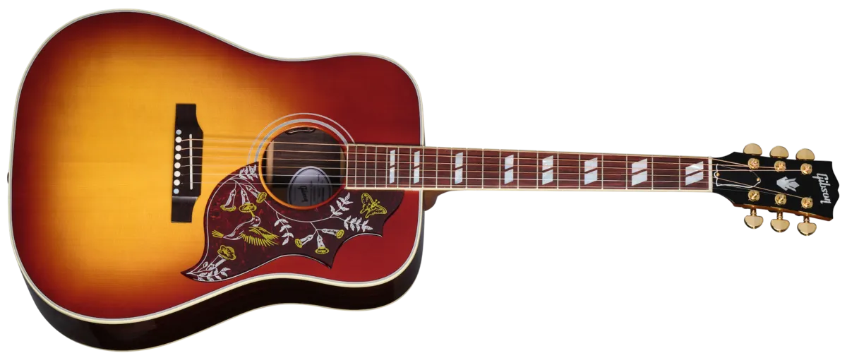 The Gibson Hummingbird ™ is legendary for its versatility; it is equally at home strumming first-position chords and delivering soaring lead lines. We are pleased to release a new version of the Hummingbird Standard with rosewood back and sides that has all of the playing and sonic characteristics you'd expect from the world-renowned square-shouldered acoustic but with slightly fuller bass response and overtone complexity due to the rosewood body. The Hummingbird Standard's mahogany neck has a comfortable rounded profile and mother-of-pearl parallelogram inlays. Also available as left-handed models, these 'birds have a TUSQ® nut, saddle, and bridge pins, gold Grover® Rotomatic® tuners, the iconic Hummingbird graphics on the pickguards, and are equipped with L.R. Baggs® VTC electronics, so they're ready to plug in on stage or in the studio. A Gibson hardshell case Is included.