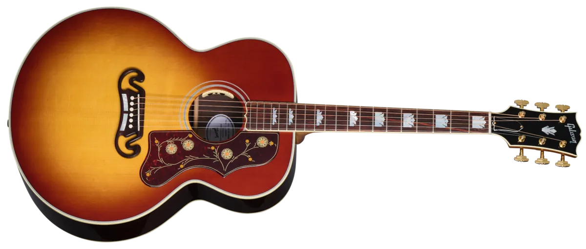 The Gibson SJ-200 is the world's most famous acoustic guitar and well deserves its designation as the "King of the Flat-Tops." Often made with a maple back and sides, the earliest examples were instead made with rosewood bodies. Now Gibson is proud to release the SJ-200 Standard Rosewood, bringing rosewood back to this highly acclaimed and cherished model. In addition to the rosewood back and sides, it features a Sitka spruce top, mahogany neck with a comfortable round profile and a rosewood fretboard with graduated crown mother-of-pearl inlays, a two-bar moustache bridge, TUSQ0 bridge pins, saddle, and nut, and gold Grover® Imperial ™ tuners. It also comes equipped with the L.R. Baggs™ Anthem active under-saddle pickup and microphone system for superb studio-quality sound when plugged in, whether you're recording or playing live. Also available in left-handed versions, a Gibson hardshell case is included.