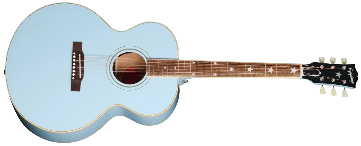 The Gibson J-180 has been the choice of rock, country, and pop royalty, including legendary artists like the Everly Brothers, Cat Stevens, Dwight Yoakam, and Billie Joe Armstrong, up to some of today's most famous artists. In collaboration with the Gibson T Custom Shop, Epiphone is proud to release a new version of this player-favorite guitar. The Epiphone J-180 LS is packed with premium features, including a thermally aged solid spruce top with scalloped X bracing, solid mahogany back and sides, a one-piece mahogany neck with a 25.5" scale length, c-profile, laurel fretboard, and the iconic "star" mother of pearl inlays that the model is so well known for. The compensated saddle, bridge pins, and nut are bone, and the headstock features the world-famous Gibson-style "open book" headstock shape, with the Epiphone logo and headstock star proudly displayed in mother of pearl. An Inspired by Gibson Custom Double Diamond emblem is etched on the rear of the headstock. Available in a variety of eye-catching colors and equipped with an L.R. Baggs ™ VTC under-saddle pickup and preamp system, this exceptional guitar is stage and studio-ready from the moment you take it out of the included hardshell case.