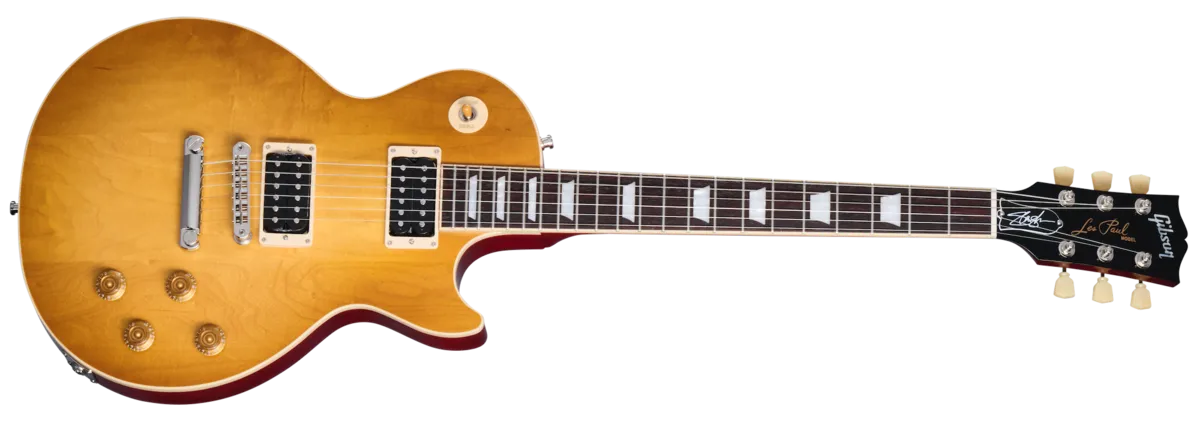 Guns N' Roses and Velvet Revolver fans will undoubtedly be familiar with the guitar that Slash named "Jessica." Jessica has been Slash's main stage guitar since 1988. The original Jessica was a factory second and one of two Les Paul™ guitars that Gibson sent to Slash in the late 80s. Now Gibson is proud to introduce a new model based on Slash's old favorite. Jessica features a three-piece plain maple top on a non-weight-relieved mahogany body and a mahogany neck with a 50s Vintage neck profile. Jessica is powered by a pair of Custom Burstbucker ™ pickups with Alnico 2 magnets that are hand-wired to Orange Drop capacitors. Originally a bright Cherry Sunburst, Slash had Jessica refinished, which is reflected, minus the considerable road wear on the original, in the gloss nitrocellulose Honey Burst with Red Back finish used on the new model. Slash's signature is reproduced on the truss rod cover, and Schaller Strap Locks are preinstalled on the guitar. Other extras include a Slash pick set, a USA leather strap, a multi-tool, and a blank truss rod cover in the included hardshell case.