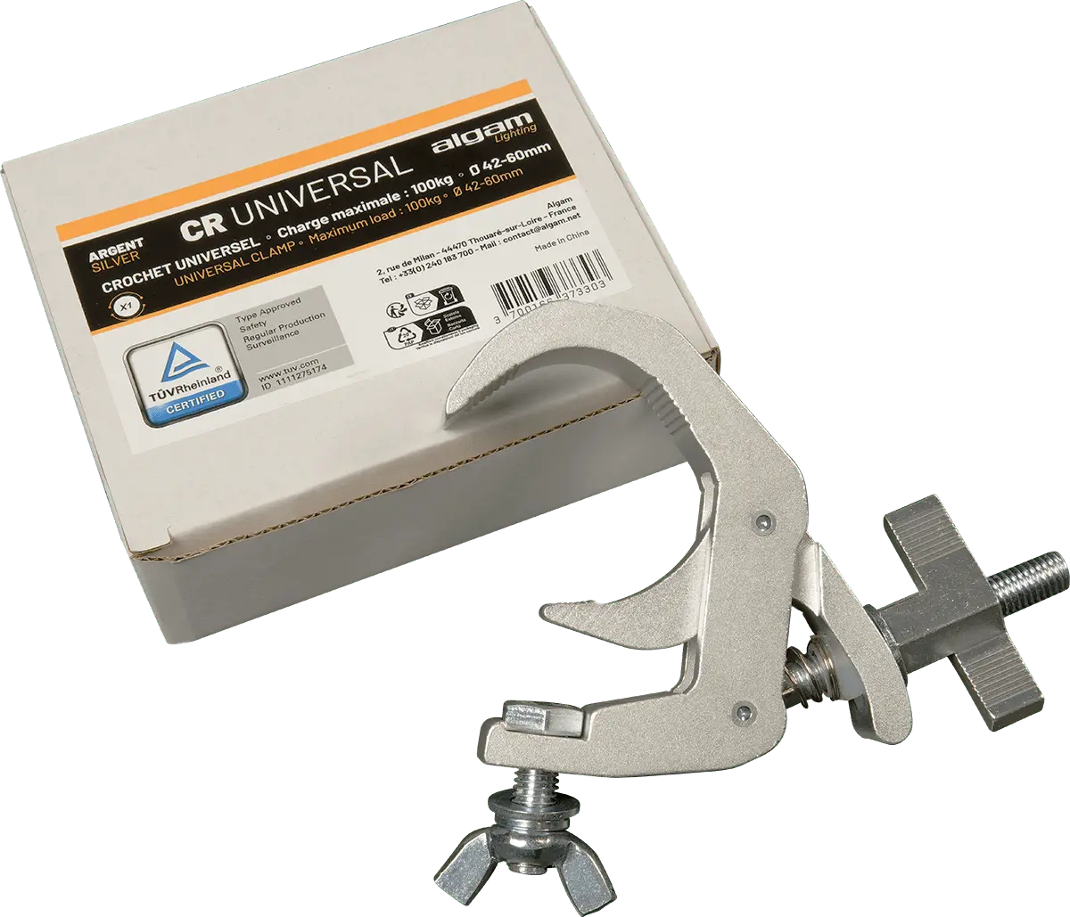 The CR-UNIVERSAL is an aluminium clamp for structures, ideal for services and installations. Designed to hook onto structures with cross-sections from 42 to 60 mm, this versatile universal clamp has a maximum load capacity of 100 kg.