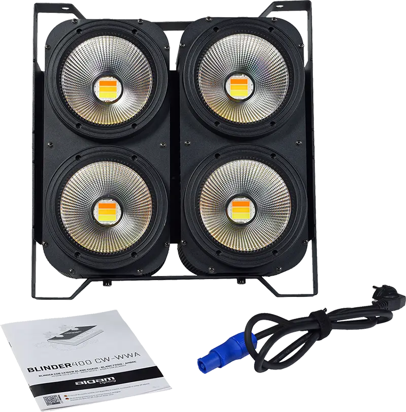 Algam Lighting's BLINDER400 CW-WWA offers all the advantages of halogen blinders, with greatly reduced energy consumption thanks to its 4 x 100W LEDs. These CW/WWA COB LEDs offer excellent efficiency and a range of colors from cool white to the warm amber hues typical of halogen systems.