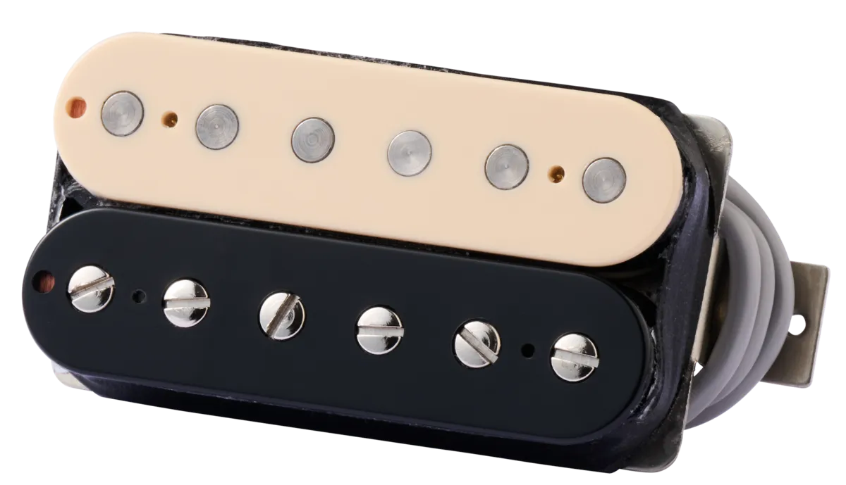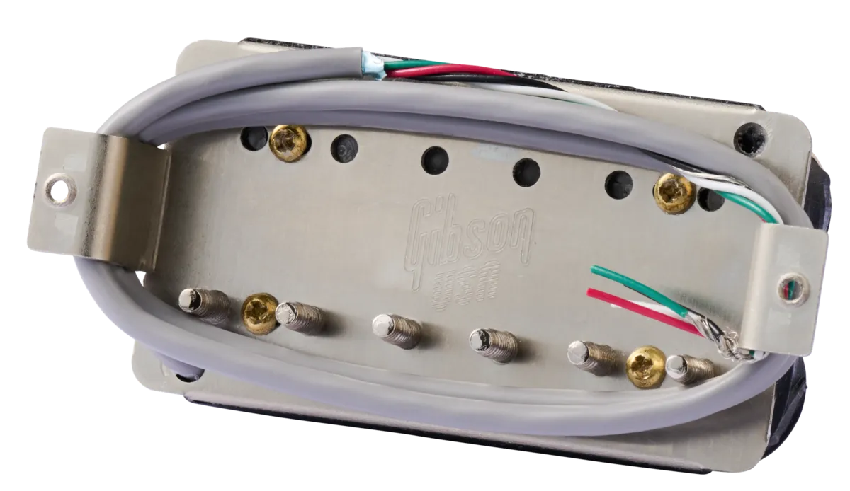 A high-output version of the 490T, Gibson's 498T humbucker combines the more powerful response of an Alnico 5 magnet with additional balanced windings on each coil, emphasizing the pickup's upper midrange frequencies for enhanced crunch and sustain. The 498T is perfect for any hard rock application, easily overdriving your amp and boosting your guitar's power and presence. The 498T's pole pieces are also spaced slightly apart to accommodate the different string spacing at the bridge and the neck. This allows you to produce powerful leads and thick rhythms without sacrificing single-note clarity. The 498T features shielded 4-conductor wiring for series, parallel and split coil operation and is fully wax potted to eliminate the possibility of microphonic feedback.
