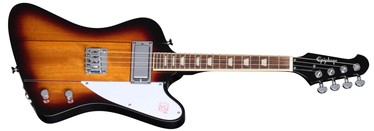 The Epiphone Mandobird is back by popular demand! This is an excellent electric four-string mandolin for all kinds of players, from bluegrass and Western swing mandolin players looking to stretch out and "go electric" to rock guitarists looking to explore new tones and alternate tunings. It features a Reverse Firebird™-inspired solid Nato wood body, a bolt-on mahogany neck with trapezoid inlays, a reverse Firebird style headstock with four Grover® Mini Rotomatic® tuners, a top-mounted, string-through-body bridge, and an Epiphone Firebird pickup paired with master volume and tone controls. An Epiphone gig bag is also included.