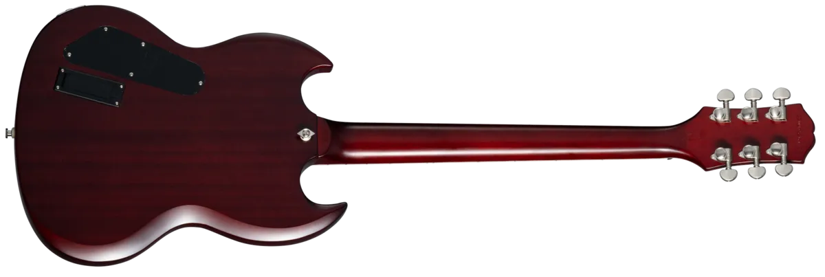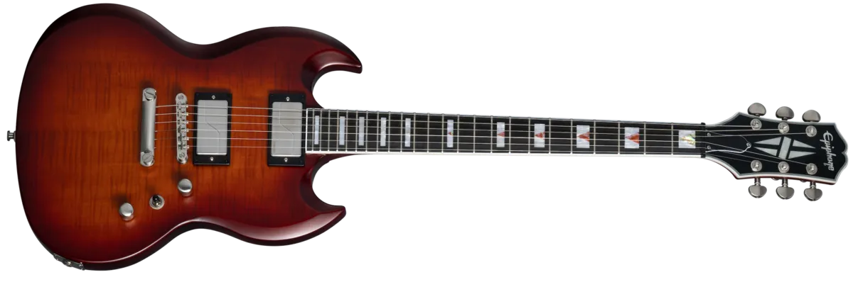 The Epiphone Prophecy SG brings high-perforrnance features to the Classic SG TV design, making it an excellent choice for today•s progressive guitarists. The mahogany body is topped With a 3/4* maple cap and beautiful AAA flame maple veneer on select colors. along With a thinner Aged Vintage Gloss finish. The SlimTaperTU asymmetrical mahogany ne•Ck features a 24-fret ebony fingerboard With jumbo fets, Block and Triangle pearloid/abalone inlays With abalone selected to complement the body color, brushed nickel Grover@ Locking Rotomatic@ tuners, and a black Graph Tech@ NuBone@ nut- The Epiphone Prophecy SG comes With brushed nickel hardware. including PosiLok strap buttons. and is equipped With a pair of proprietary Fishman Fluence@ pickups With threevoicing options that selected With the push/pull master and tone Controls - high gain. modern active high-output humbuckerTM With both Controls pushad in, Classic Patent Applied For-style humbucker when the tone control is pulled out, and shimmering, optimized single•coil tones when the volume control is pulled out. A premium gig bag is included.