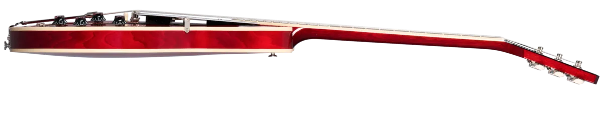 The Gibson ES-330 has garnered a reputation for its distinctive sound. comfortable playability. and classic aesthetics. making it a favorite among musicians seeking a versatile. vintage-inspired ESTU-style electric guitar. A close cousin of the Epiphone Casino"'. the ES-330 shares a similar fully-hollow thinline body made of 3-ply maple/poplar}maple and is Supremely resonant and warm-SOunding due to the hollOW body- trapeze tailpiece, and deep-set neck that creates an optimized bridge location. The mahogany nock has a cornfortable Rounded 'C' profile and features a rosewood fretboard With acrylic small block inlays and medium jumbo frets. The ES-330 is powered by a pair of Doggar P-90 pickups that are hand-wired to 500k potentiometers and Orange OropØ Capacitors for bright and Clear clean tones and wonderfully nasty, snarling tones when overdriven. The ES-330 is not only a great-sounding electric guitar for stage and studio use but is also equally enjoyable as a songwriting tool and is considered by many to be the ideal couch guitar" since it can be enjoyed equally well when unplugged and played acoustically. We•re proud to bring the ES-330 back to the Gibson catalog so players can once again have the opportunity to discover the mag ic Of this distinctive-sounding, vintage-insplred classic.