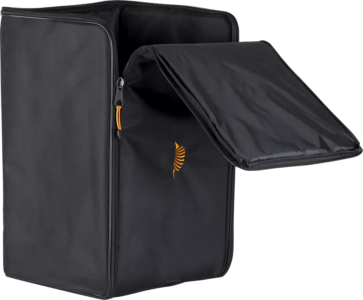 The case zipper is arranged to allow for a clamshell opening, making it quick and convenient to store your Cajon after your percussion performances.