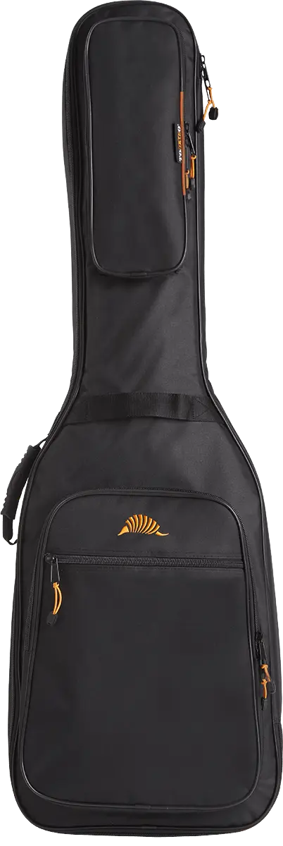 The 10mm zipper with an orange elastic pull guarantees a reliable and easy closure. The front pocket, enriched by the embroidered "Armadillo" logo, features a compartment corresponding to the instrument's body with two dividers with zips, providing a convenient and protected space. Additionally, an upper front pocket corresponding to the neck allows you to neatly store accessories.