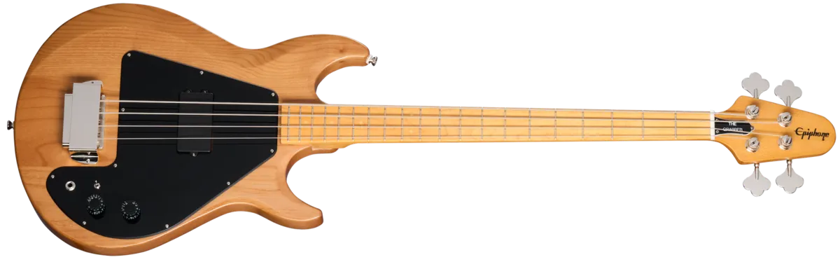 Players have been requesting a reissue of this model for decades, and Epiphone has heard you! The Epiphone Grabber Bass is an Inspired by Gibson reissue of the vintage 70s era classic that has been played by everyone from Gene Simmons and Krist Novoselic to Mike Dirnt and Lou Barlow, to name a few. The Epiphone Grabber features a three-piece alder body, a 34" scale three-piece maple neck with 20 frets, and an Epiphone Bass Humbucker pickup that delivers earth-quaking lows and solid, punchy midrange. The pickup is wired to master volume and tone controls, as well as a coil-splitting mini toggle switch for even more tonal options. A premium gig bag is also included.