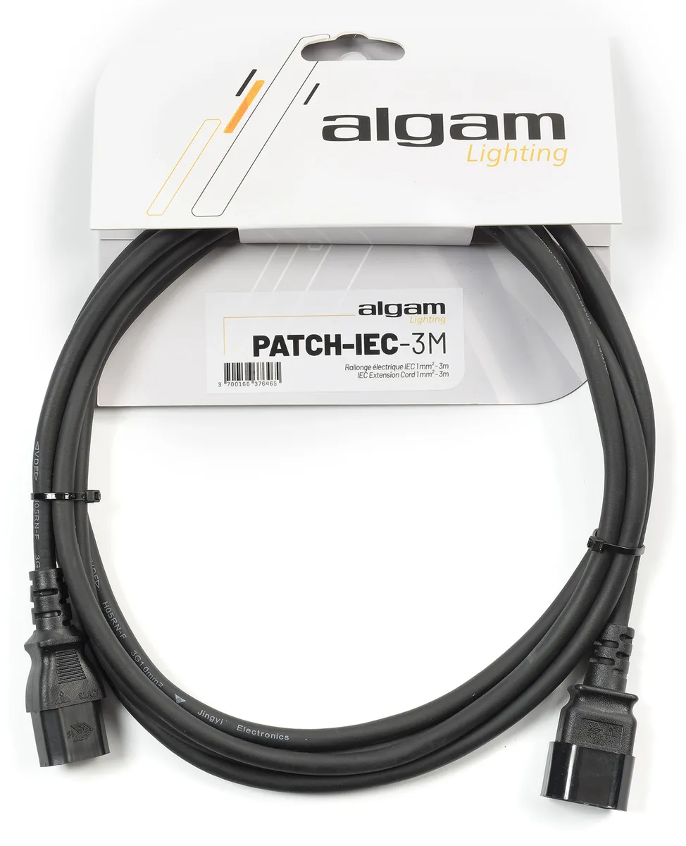 Algam Lighting's IEC power extension is ideal for powering light machines with IEC connectors over longer distances, or for daisy-chaining several light machines with suitable IEC inputs/outputs.