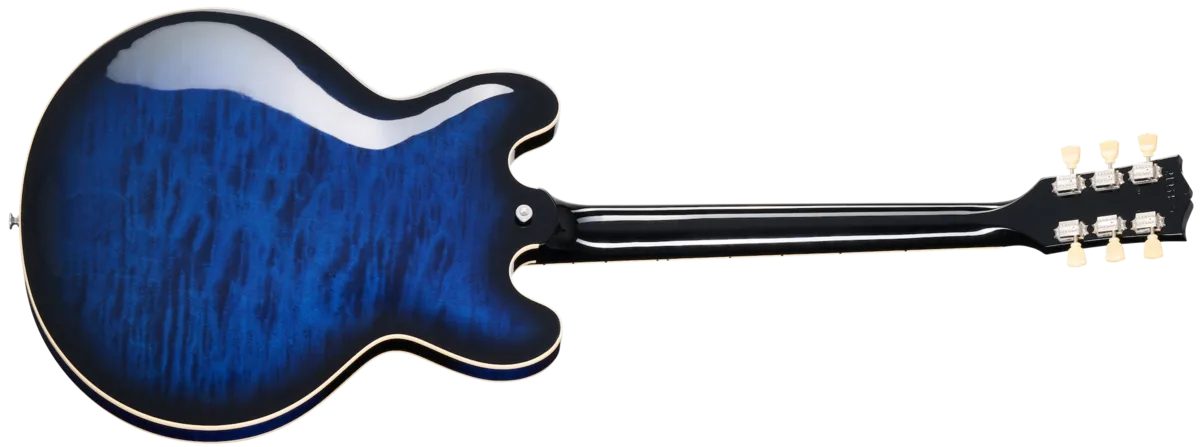 The Gibson ES-335 Figured is the perfect blend of form and function. Crafted with a maple centerblock and quarter-sawn Adirondack spruce bracing, players will be impressed by the lightweight feel and expanded range of tonal capabilities. Equipped with high-end appointments like our hand-wired control assembly with Orange Drop® capacitors, Gibson's new Calibrated T-Type humbucking pickups, Vintage Deluxe style tuners, and lightweight aluminum ABR-1 bridge and Stop Bar tailpiece anchored with steel thumbwheels and studs. The AAA figured maple is set off by beautiful Custom Color Series gloss finishes including Blood Moon Burst, Deep Ocean Burst, and Honey Amber.