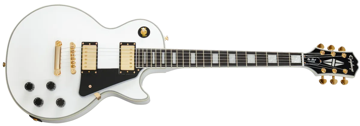 The Epiphone Les Paul ™ Custom has been updated and is now better than ever. Part of the Inspired by Gibson™ Collection, it honors the 1950s-era classic that was designed by Mr. Les Paul himself in 1954 as the "tuxedo" version of his groundbreaking solidbody masterpiece. It features an all-mahogany body, a mahogany neck with a refined Modern Medium C neck profile, an ebony fretboard with pearloid block inlays and medium jumbo frets, gold hardware, including a gold Epiphone LockTone™M Tune-O-Matic™ bridge and Lock Tone Stop Bar tailpiece, a pair of Epiphone's new Probucker™ Custom humbucker™ pickups, which are based on Gibson Custom's Custombucker humbucking pickups, and a larger Custom split-diamond inlay on the headstock. This Epiphone Inspired by Gibson model also has the 60s style Kalamazoo headstock, a Graph Tech® nut, era-appropriate wiring, and CTS® potentiometers. An Epiphone premium gig bag is now included to help keep your guitar safe when not in use and when traveling.